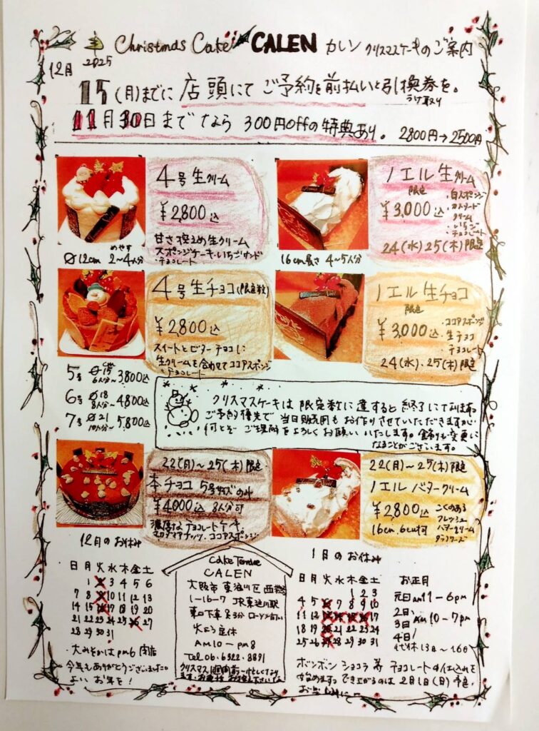 2025年クリスマスケーキのご予約と年末年始の営業について